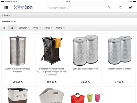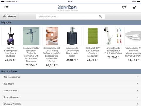 App des Schöner-Baden-Shops www.schoener-baden-24.de, Badaccessoires und Badmöbel der Markenhersteller Nicol und Sanwood, Badteppiche von Clarissa und Batex.