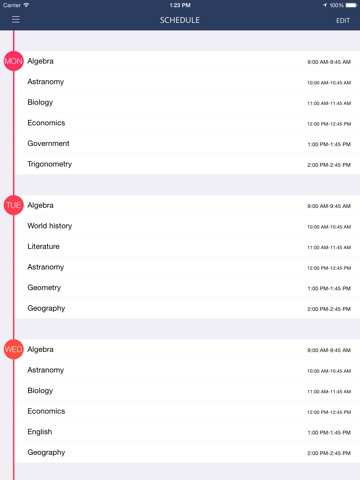 Добавьте возможность писать номер аудитории. А также расписание ведь не у всех на неделю, так что, прошу, добавьте пожалуйста возможность выбора расписания на одну или две неделе, и если две неделе - то чтобы можно было написать, на какой неделе (четной/нечетной) у тебя урок или пара. И еще, хотелось бы разделение предмета на лекции, пары и лабораторные занятия. И было бы здорово отдельную строку для вписания в нее лектора и преподавателя по практике. Если будет это, то в следующем (надеюсь) ближайшем обновлении я поставлю 5 звезд и искренне скажу вам огромное спасибо. Но а пока удалил, для студента почти бесполезное приложение
