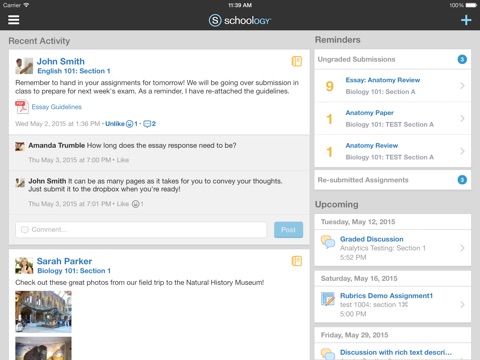 THIS LOOKS ALOT LIKE FACEBOOK. Lol but the app works well and the website does too. One thing you could add is maybe to allow students to post things like photos, attachments and statuses. Kinda sorta like Facebook. Overall, great app.