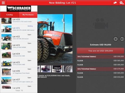 Schrader Real Estate & Auction Co., Inc. presents its online bidding app that can be used to bid in its live Agricultural Equipment Webcast Auctions.