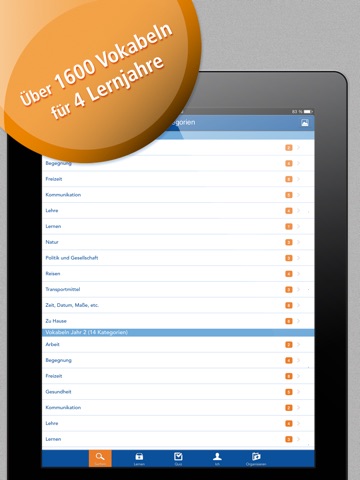 Insgesamt enthält die App einen Wortschatz von über 1600 Vokabeln für 4 Klassenstufen.