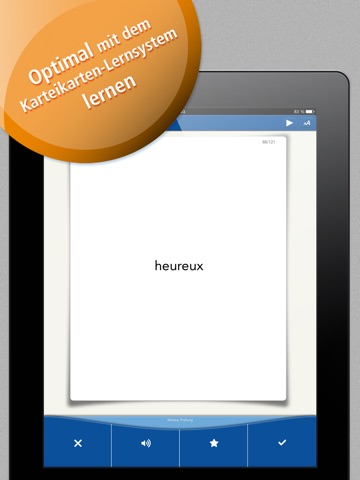 Französisch lernen ganz wie du möchtest: Wähle aus über 1.600 Vokabeln für 4 Klassenstufen und entscheide, wie du am liebsten lernen möchtest: Du kannst Karteikarten anlegen, die Vokabeln nach Themengebieten auswählen, oder ganz einfach mit einem Quiz dein Wissen überprüfen. Sie enthält alle Vokabeln aus dem ersten Lernjahr in den Kategorien Begegnung und Freizeit. So kannst du die App erst einmal unverbindlich ausprobieren. Die Vollversion der App bekommst du per In-App-Kauf oder kostenlos bei einer Festanmeldung zum Schülerhilfe Online-LernCenter.