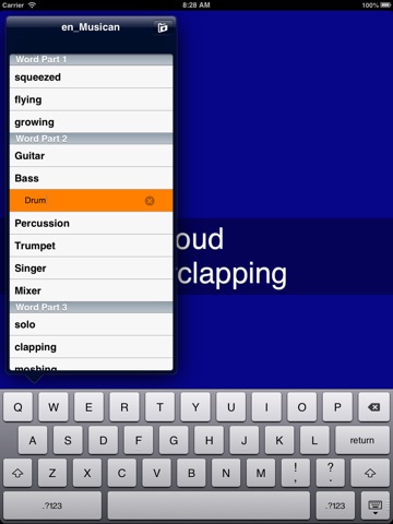 Schwall App mixes words from three editable word lists for you and displays them.