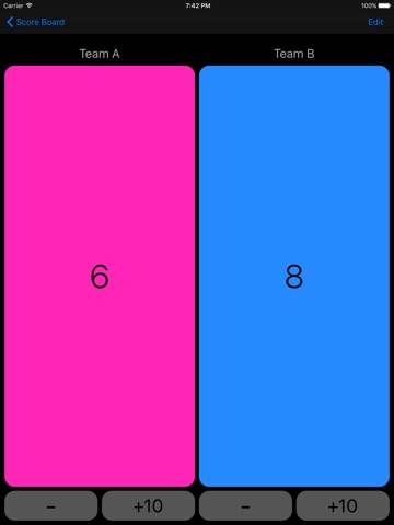 • Set team names and colors so you can tell whos ahead at a glance