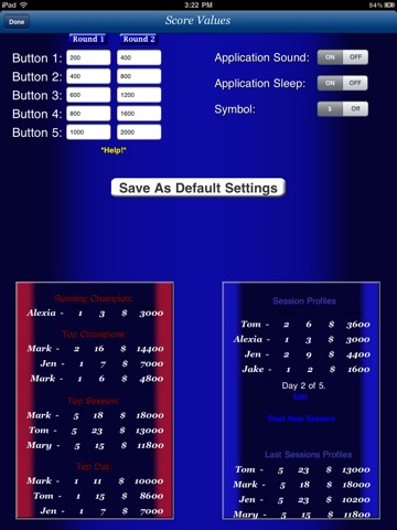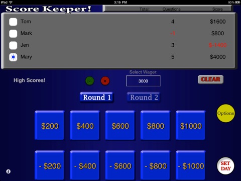 Score Keeper is here! Have you ever been watching game shows, sporting events, or playing games while keeping track of scores with pencil and paper? Now with this 4 player app you can keep track of questions answered, dollar values earned, points earned, make wagers, and Top Player Scores!