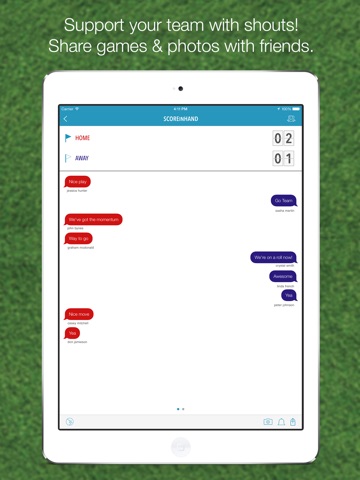 Using the map or list view, one can easily locate games of interest. Once at a venue, show your support by selecting your team. Then cheer your team on by posting inspirational comments - Shouts - with one click. Take and share photos from within the App and earn badges for being an accurate scorer and recurrent team supporter.