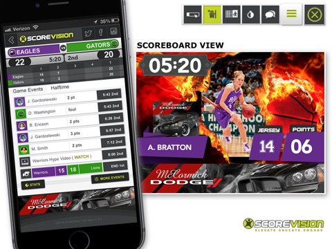ScoreVision is an technology company providing schools and sports facilities with all-digital scoreboards that deliver professional, jumbotron-like experiences similar to those at the college or professional sports level. In addition, the ScoreVision system turns any facility into a high-definition presentation room which can be leveraged for many other purposes during the rest of the week when games arent in progress. We call this the "Three Es": Elevate, Educate, Engage. This app highlights the capabilities of the ScoreVision solution. For more information on ScoreVision please visit our website.