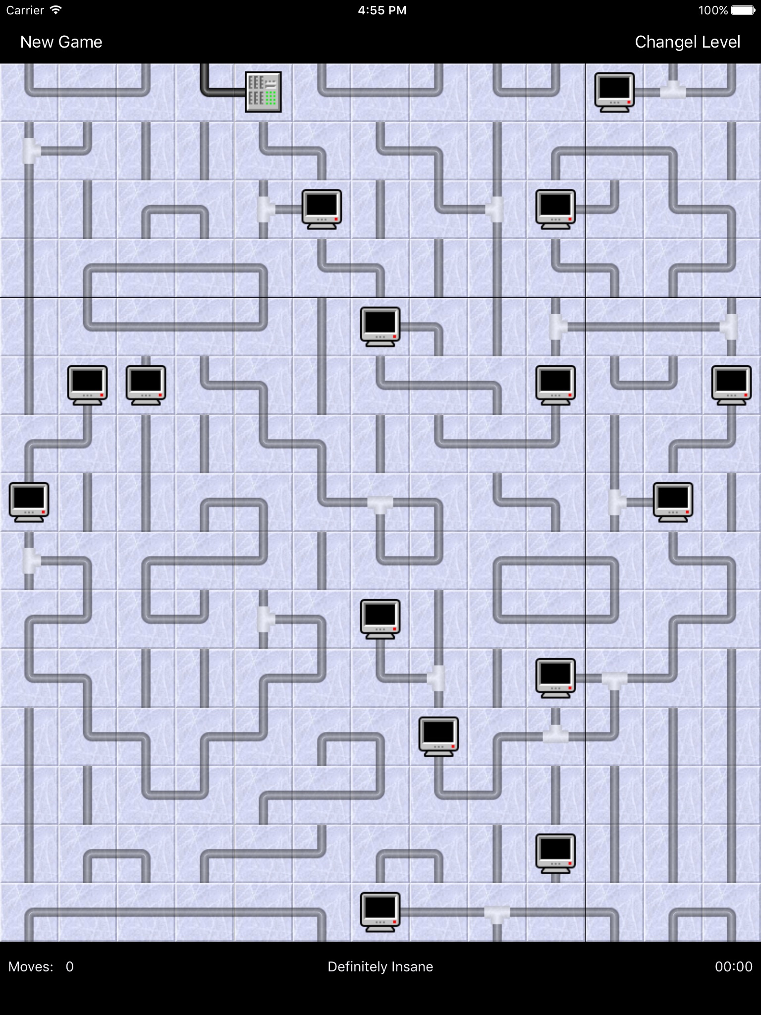 You are given a computer network with the connections all scrambled; rotate the tiles to connect all the terminals to the server. See if you can make your way through the7 difficulty levels on iPhone and 9 levels on the iPad.