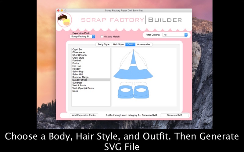 The program will take your selections and create a SVG file for you to import into your favorite cutting program.