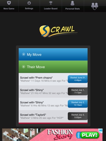 •“SCRAWL” is an Iphone app Word Game in which the Two to Four Players achieve points by placing the selected letters onto the 15X15 grid board. The words are arranged across and down in a Crossword pattern and the words must exist in the commonly used dictionary.