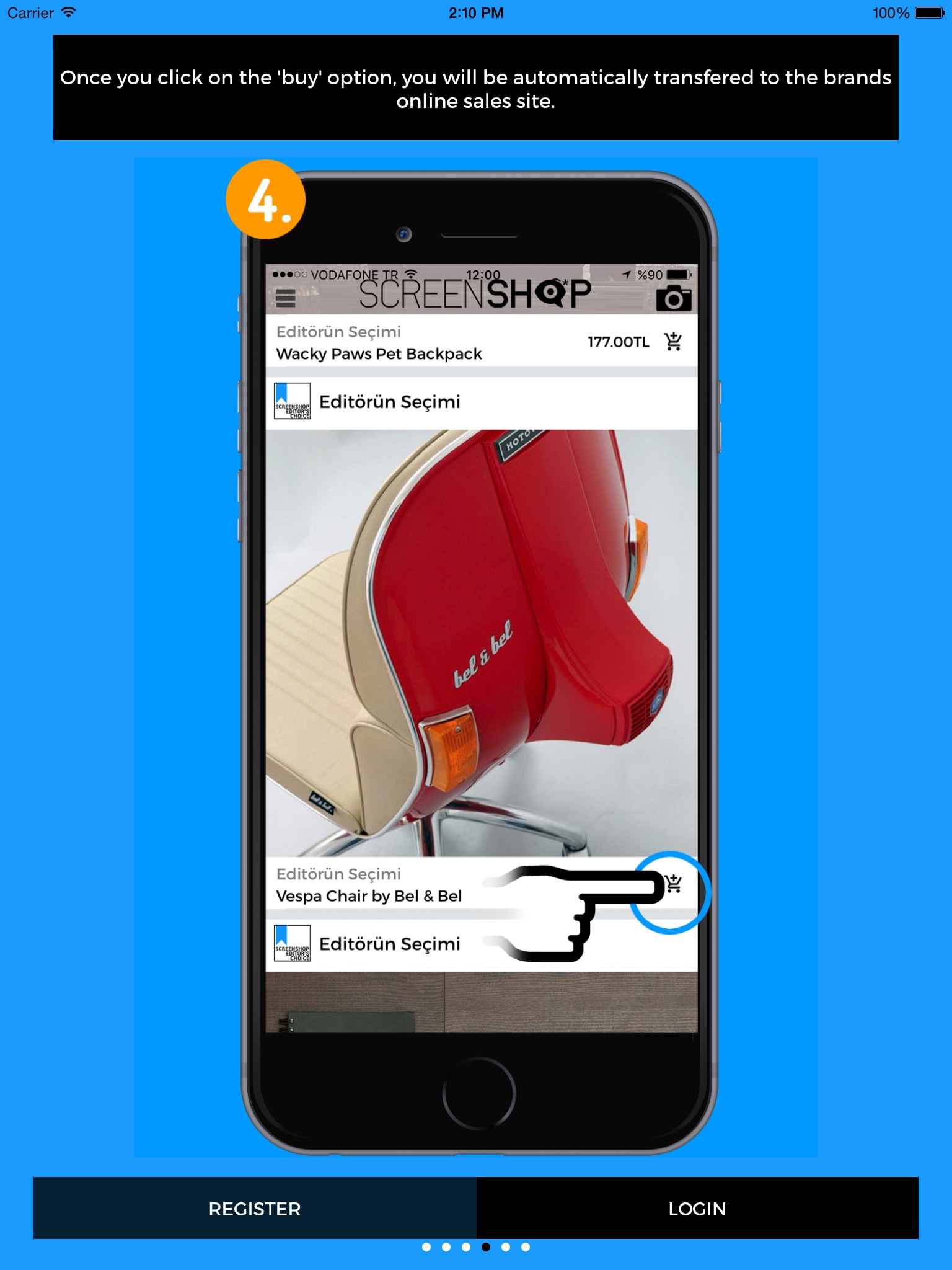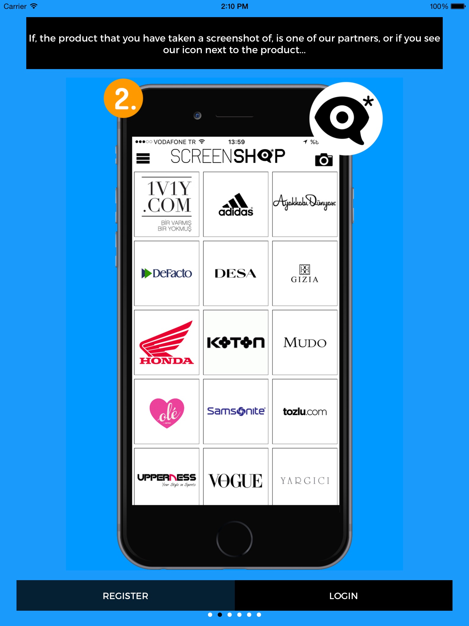 Take the screenshots of the products you like, if the product that you have taken a screenshot of is one of our partners, or if you see our icon next to the product it will be added to your favorites under screenshop and will be notified via a notification and email.
