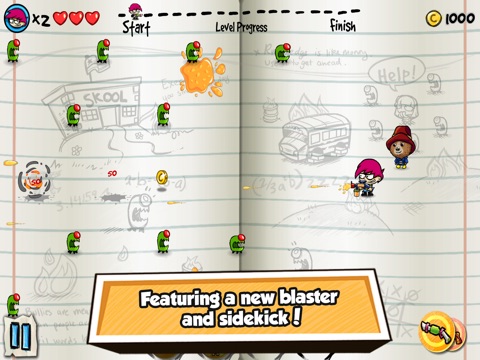 Scribble Hero features unique hand-drawn graphics, 2 modes - Story and Survival of pure, adrenaline-pumping fun, and a ton of boosts, weapons and upgrades to collect and customize your experience every time you play. Get ready for doodle-blasting mayhem!