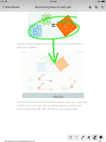 Draw over pdfs and images. Snap a picture of homework and draw on it, or review a pdf together. Once you are finished, you can save out a new pdf with your annotations.