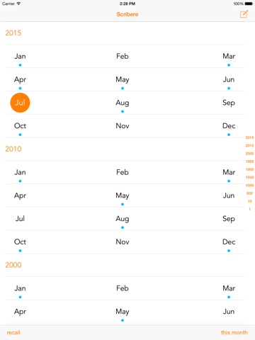 All Years View : A view for all your entries by years and month, scroll and tap on the month to view all entries for the month.