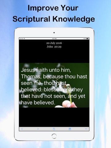 Find more meaning in your life. Its easy to go days and weeks without pondering anything of spiritual significance. Imagine how much better your day could be by simply reading 1 passage from the Bible. Not just any passage, but the best passages. Feel free to share your scripture of the day with all your friends and family via our recently added sharing capability with Facebook and Twitter.