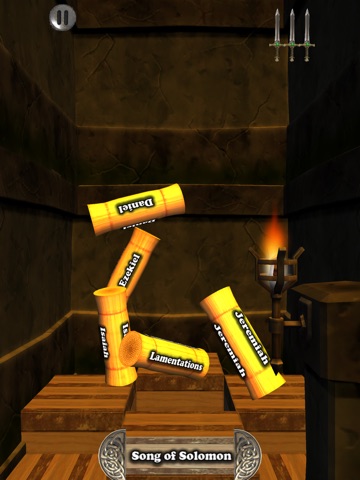 Memorizing the books of the Bible in their correct order has never been such fun! Slice and dice your way through 27 levels that range from speed challenges to complex puzzles. This Bible game begins easy so if you are unfamiliar with the Bible you will have no problem getting started. The easy levels also give you a chance to have fun experimenting with the real time chopping and slicing. Using some of the most advanced slicing technology available, objects can be cut at any angle, any number of times while responding to the physics of their environment. As you progress through the game the levels get more complex, fast paced and downright difficult. By the time you complete the last level you will know Genesis to Revelation backwards and forwards, enabling you to quickly look up any Bible reference that comes your way.