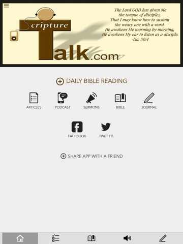ScriptureTalk.com’s focus is to provide information, edification, and encouragement to people who seek to follow the Bible and walk in the footsteps of Jesus. At ScriptureTalk, you will find articles, devotionals, and sermons that you can read or listen to on a regular basis. In a world that fights to take our attention away from God and insists that we listen to so many things that will pull us away from Him, we desire to simply study His word and to allow the scriptures to speak to us and guide our lives.