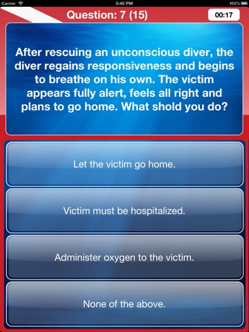 Anyone that is getting ready for their Open Water Diver or Advanced Open Water Diver exams will benefit from this application, practice and read the explanations for each question, and make sure you score your maximum on exams. Learn more about scuba diving by reading the answers to the questions, and become confident about your knowledge, which in turn will give you much more confidence when diving, and making decisions while having fun.