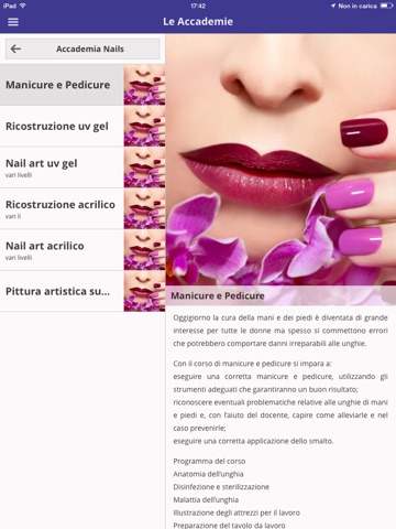 Corsi speciali: massaggio linfodrenante, antistress connettivale, emolinfatico, hot stone, ayurvedico, aromaterapia e fitoterapia, riflessologia plantare, digitopressione, pedicure curativo, ricostruzione UV gel e acrilico, nail art nail design, trucco depoca, trucco sposa e fotografico, moda, antiage, camouflage, fonatura e acconciatura.