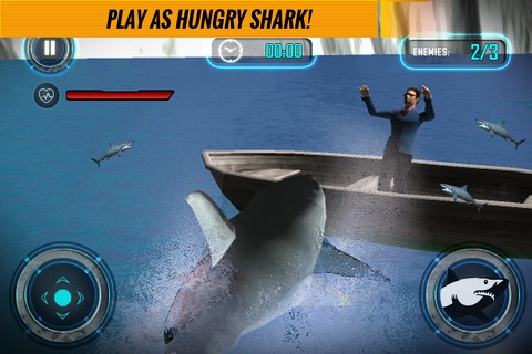 Human hunters and Angry Sharks are Rivals since the man has set sails in the ocean. Many species of shark like tiger shark, blue shark, hammerhead shark sometimes are Endanger because shark hunting is not controlled and stopped. Create chaos and mayhem on beach, this time the table has turned a Hungry White Shark is exacting revenge on the hunters and you are controlling this crazy evil carnivore in this Sea Monster Shark Attack 3D. This under water monster will attack at will on the hunters to take shark revenge. Innocent civilians are also not safe to you playing as a shark all human kind is the enemy, who set foot in the water is shark chum.