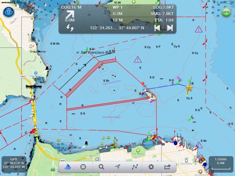 - Vector charts - all buoys, lights etc. are tappable