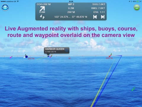 Unique AR view mode (IAP) allows you to view buoys, lights, ships, waypoints, route and track overlaid on your iPhone or iPad live camera view. With "AR LockOn" you can select a target on the chart and then be guided to it in the AR camera view. You can also see at night and in the fog with the FLIRONE Infra-red camera.