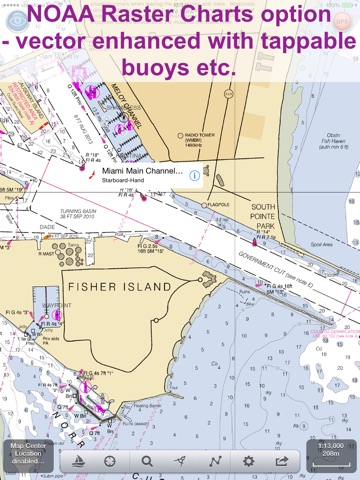 Vector charts provide many advantages over traditional raster charts. Buoys, Lights, Bridges, Depth Contours, Depth Soundings, Rocks, Anchorage areas, NOAA Weather Buoys etc. are all selectable and have real time distance, bearing and detail information. Turn off layers to de-clutter the display and only show what is important at the time. Tides, moon and sun times and weather are also all available at your fingertips.