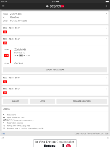 • Tickets: In addition to timetable enquiries you can also buy tickets for public transport in Switzerland.