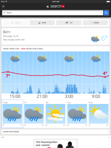 • Weather forecast: The most accurate local forecast updated at 10 minute intervals. Animated movies for rain, clouds and temperature. Eight-day weather forecast including min/max temperatures and precipitation.