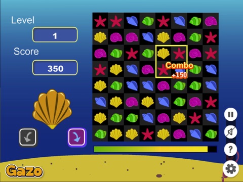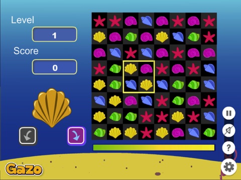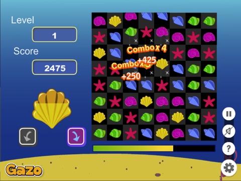 Cute deep sea animals are waiting for you to join them. Show your crushing skills by turning and matching the sea shells of the same color. You can never know what happens in the lives of these colorful creatures! They feel bad sitting all by themselves in the depths of the ocean, they need some fun! Put three or more shells with the same colors on the same line and they will pop! Try to crush as many shells as you can and level up! You can get combo points if you can match several groups of shells one after the other. Lets start this amazing shell pop adventure!