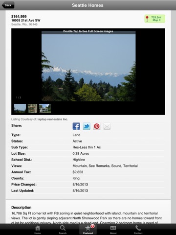 Real Estate exploration is enhanced with Seattle Homes property search on your iPhone! Your search has just become easier. No more carrying around listing flyers, trying to search for directions to each one. View eye-popping photo galleries of homes, scan featured listings, and utilize an entire area’s search with just a touch of your mobile device. With this app you now have all of this at the touch of your finger tips. Be an informed real estate consumer on the go!