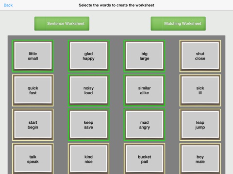 Teachers and parents can also create customized content worksheets from the app. You pick the word list and create matching worksheets or sentence worksheets.