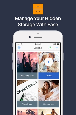 Take pictures using the built-in camera or move already existing photos from Camera Roll to your secret folder within the app. Secured private cloud storage allows access to your private album from different devices at any time.