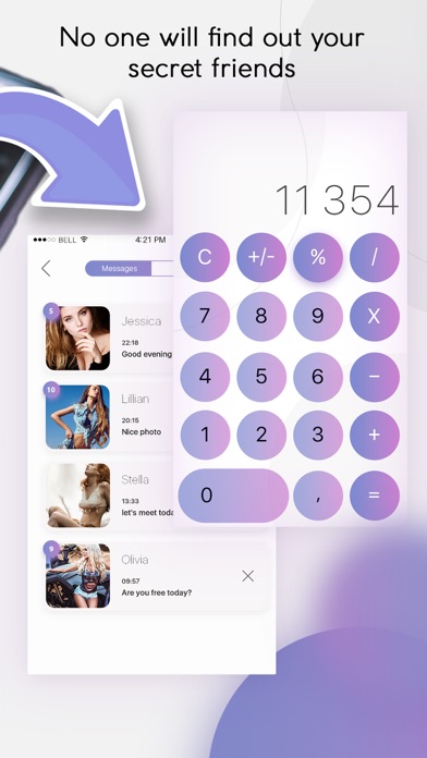 Now you can securely meet new friends. With our secret Dating + Calculator no one will find out your secret wishes and arcanes. If you need to hide your romantic life, Dating + Calculator is for you! Our application will look like an ordinary calculator on your desktop, but as soon as you enter your password you will dive into the world of flirt and new impressions! Meet, talk and date with people; no one can guess your adventures!