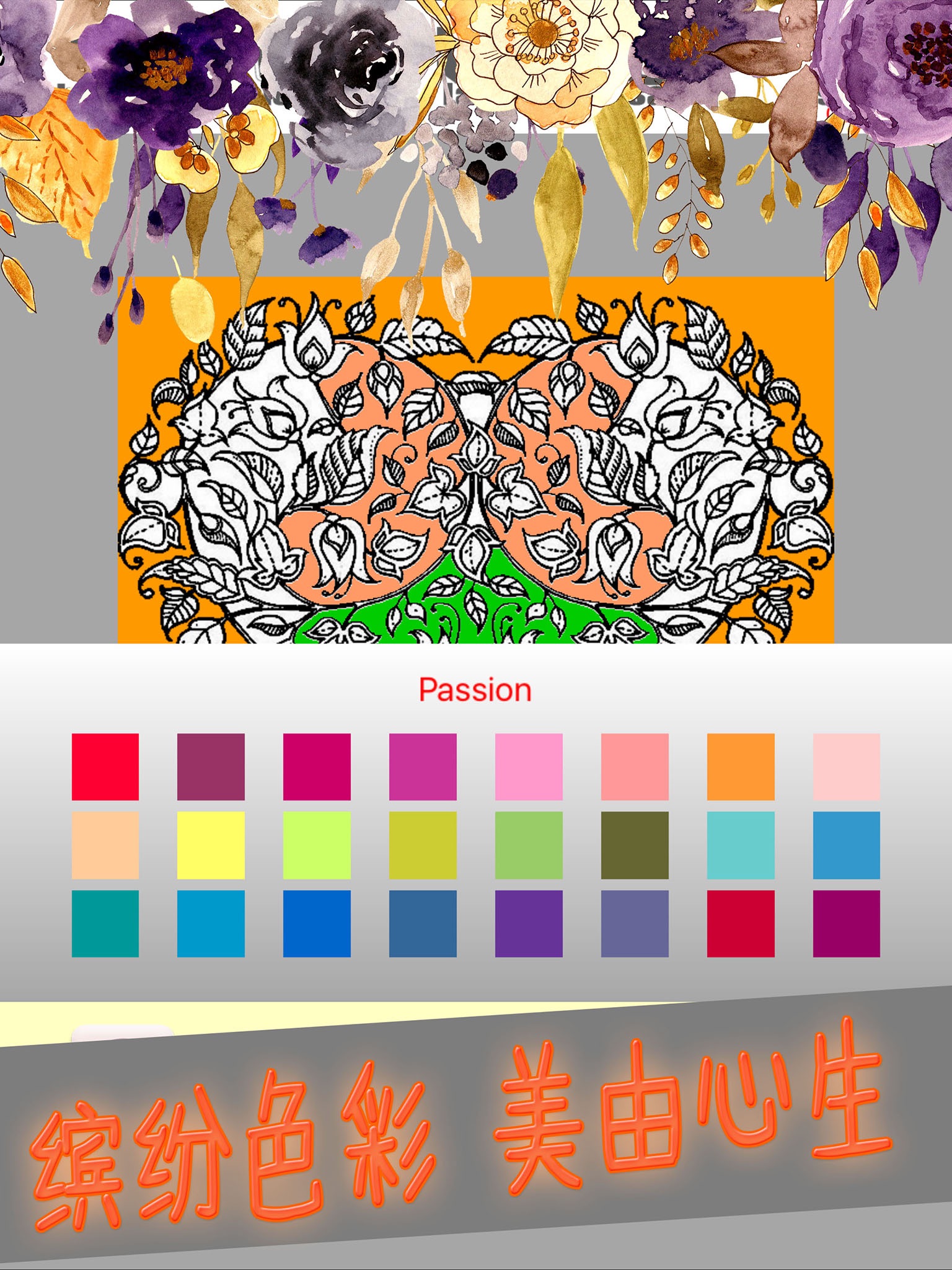 Scattered elegant line drawing flowers, birds, this is a paper and pencil coloring game. You can give full play to the imagination, to explore and perhaps even your own, have not found The Secret World, moving the finger up and painting it, release of your heart.