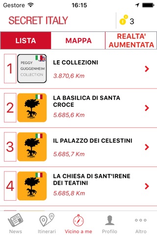 - individuare, grazie al modulo “vicino a me”, i punti di interesse attorno a me, anche i più insoliti e nascosti;