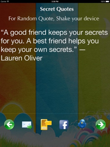 A beautiful collection of Secrete quotes.User can share them Via Facebook,Email,SMS and Twitter.