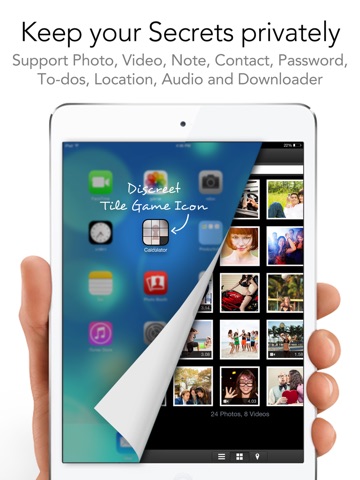 Secret Tile Game Icon is here to help you to protect photos, videos, notes, passwords, to-dos, audios, secret messages, locations in a very safe place behind strong security system. Plus! build-in private browser.