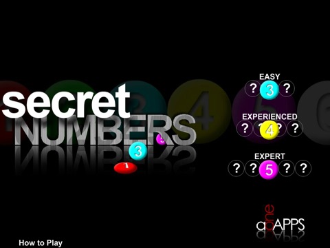 a1APPS secretNumber has 3 skill levels: guess 3 numbers (easy), guess 4 numbers (experienced), guess 5 numbers (expert).