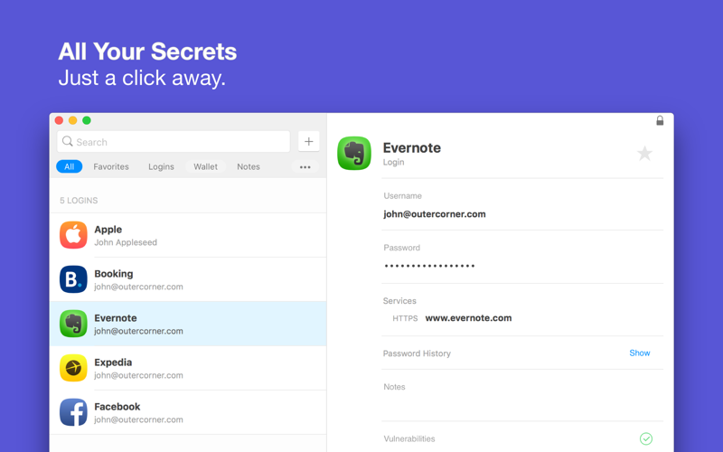 • Your secrets, on all your devices. Using iCloud your secrets are effortlessly kept in sync across you Mac, iPod, iPhone and iPad. (iOS app sold separately)