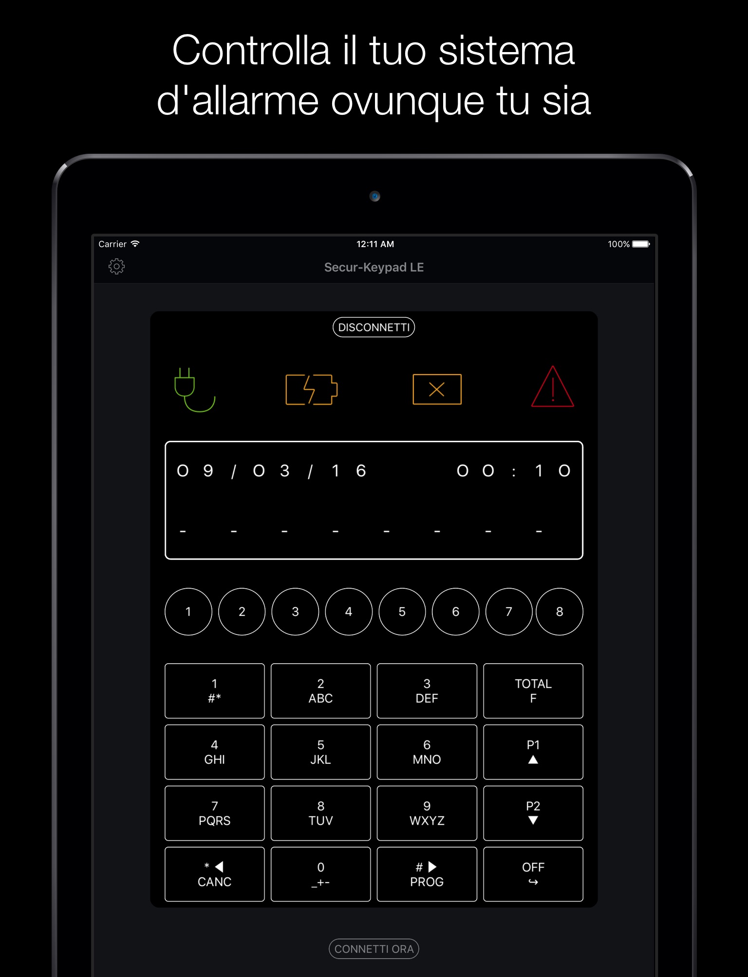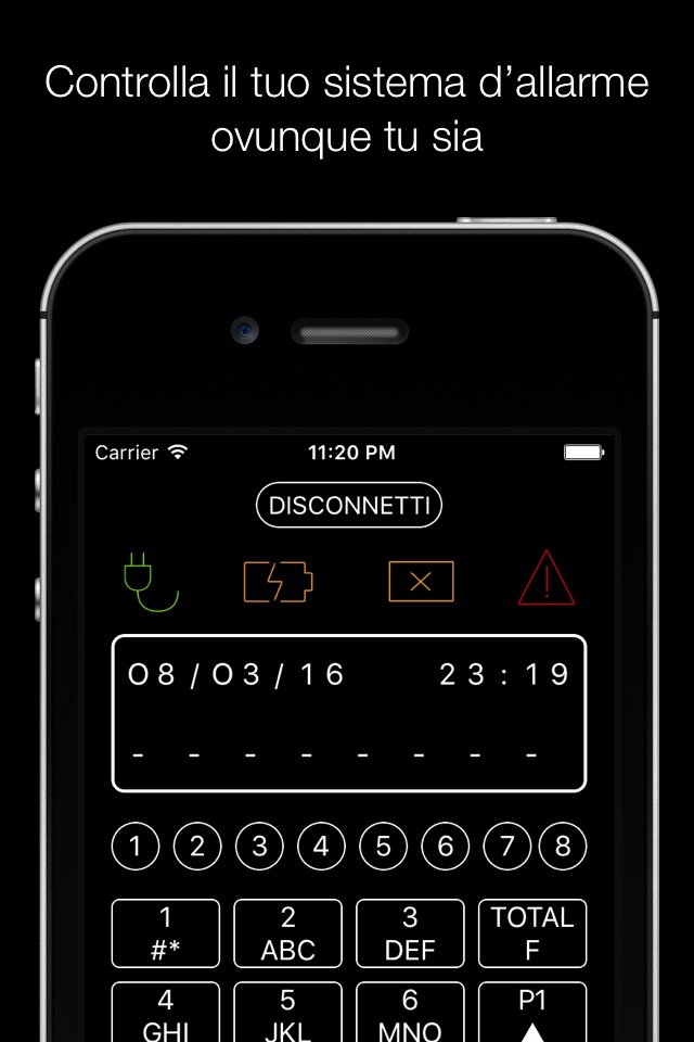 Developed for iPhone, iPod Touch and iPad, has a simple user interface that invokes a digital touch keypad as well as wired touch keypad installed on the system of the manufacturer.