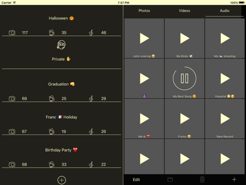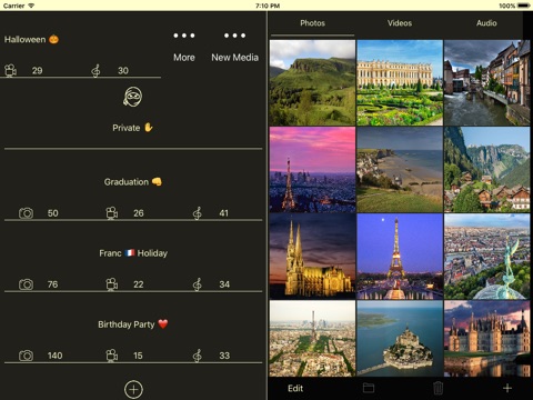 4- Keep everything organised, the App sorts the album’s media contents by the media type. All you need is just to import your media, and the App will take care of the rest.