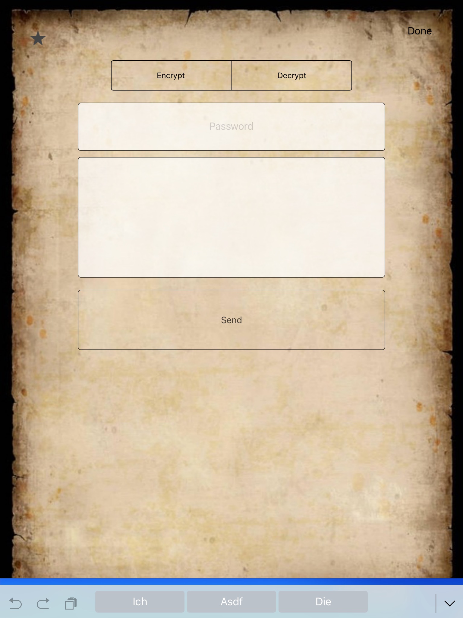 Send the encrypted or decrypted message directly from the app as a text-message. You don’t have to close the app in a complicated way.