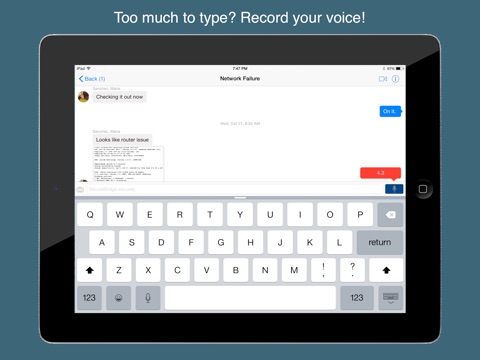 SecureBridge is purpose-built for security-conscious organizations. In today’s 24-7, global business environment, personal devices are frequently used to communicate all types of sensitive and critical information. SecureBridge protects the confidential nature of these conversations by providing a secure to solution to share images, voice messages and video with colleagues and customers.