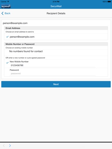 Send SecurMail messages from your mobile or table device with secure two factor authentication of your recipient.