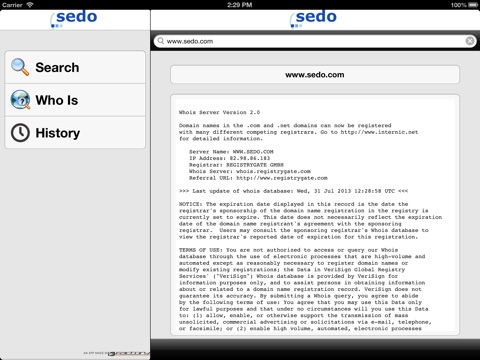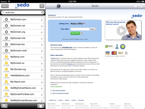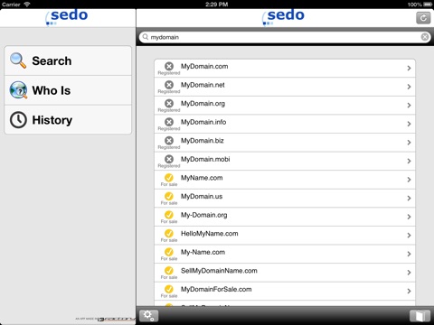 Sedo’s Domain Search App is 100% free and secure. We dont store your information and we dont do domain front-running.