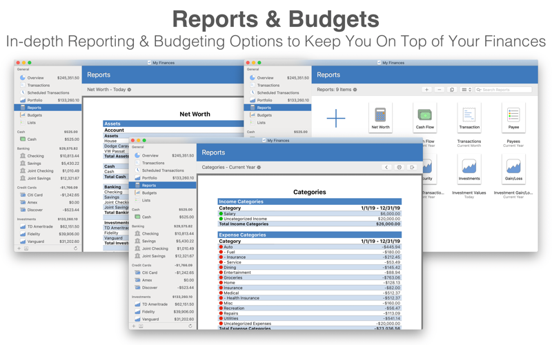 Manage all of your financial accounts in a single place and gain control over your finances. Track all of the financial accounts you might have including banking, credit cards, investments and others. Generate a variety of customizable reports and budget to keep your spending on target. Track and monitor your individual investments and your investment portfolio as a whole. Perform these tasks and more in any of the 150+ different currencies available.