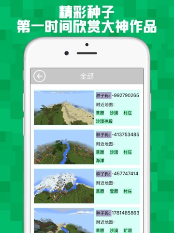 Do you think the random map created in Minecrafts new game always not very good, you would like to get a world more beautiful, or you want get a awesome building in the start. Then get this app now. find the seeds all for free. Over a hundred seeds can be found in this app. And it will update frequent. You can get what ever you want, and all the new maps.