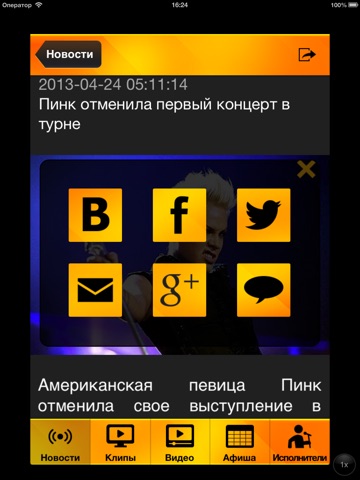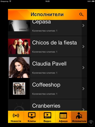 На данном этапе в приложении представлены разделы Клипы, Видео, Новости и Артисты. К просмотру доступно более двух тысяч популярных видео и клипов в НD качестве, самые свежие новости и информация об артистах и светской тусовке. В дальнейшем планируется еще добавить раздел Афиша где будут отображаться топовые музыкальные и шоу-бизнесовые события со всего мира. Также планируем расширить разделы функционально: рейтинги, списки топ-видео, чарты, голосования.