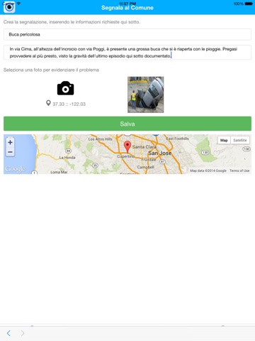 Permette di inviare al comune di residenza, segnalazione di problemi legati al proprio territorio, come buche nelle strade, sfalcio erba, zone poco illuminate, etc. Tali segnalazioni saranno pubblicate direttamente nel sito del comune convenzionato, previa registrazione.